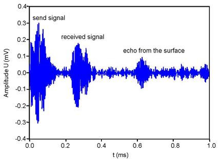 Fig. 4: HF signal from an airborne ultrasound measurement on a PE 100 pipe segment