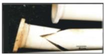 | Figure: | Brittle fracture of a polyamide (abbreviation: PA) pipe |