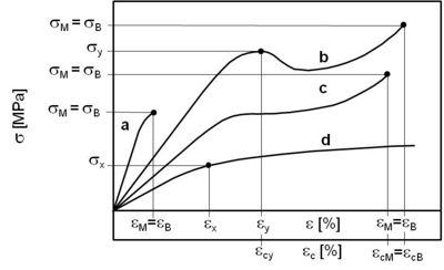 The following material parameters, among others, can be derived from the compression stress (σ)-compression strain (εc)-diagram: