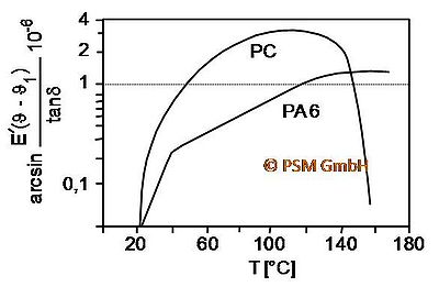 The loss angle δ is generally less than 15° for polymers. Therefore, sin δ can be set equal to the loss factor d = tan δ, which is also temperature-dependent. For the stress-controlled fatigue test (σm = const.), the following then applies: