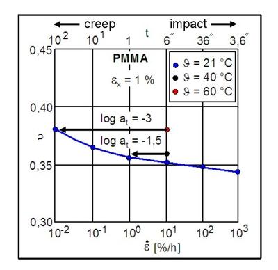 | Fig. 2: | Poisson's ratio as a function of strain rate ε˙ of PMMA under uniaxial deformation according to Menges |