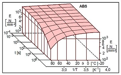 | Fig. 1: | Time and temperature dependence of the modulus of elasticity for ABS according to Menges |