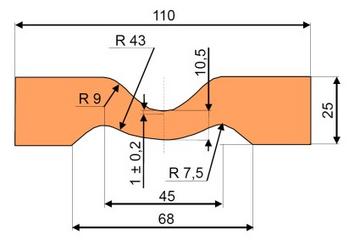 In addition to the trapezoidal test specimen and the trouser specimen, the curved crescent test specimen is also used in testing practice.