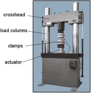 | Fig. 2: | Servo-hydraulic testing machine MTS 319.25 from MTS Systems GmbH, Berlin, for performing WÖHLER tests |