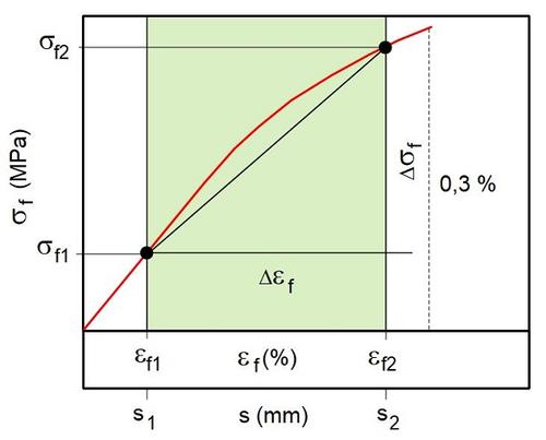 Fig. 1: Determination of the secant modulus in three-point and four-point bend tests