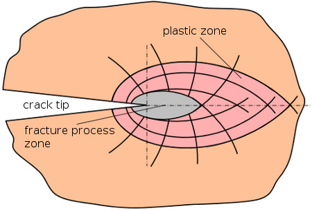 Fig. 1: Fracture zone and plastic zone at the crack tip [1]