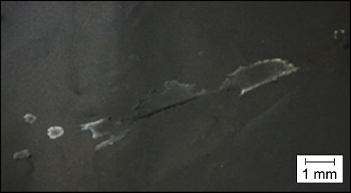 | Fig. 1: | Hole formation in a Mater-Bi® mulch film after 30 hours of artificial weathering |