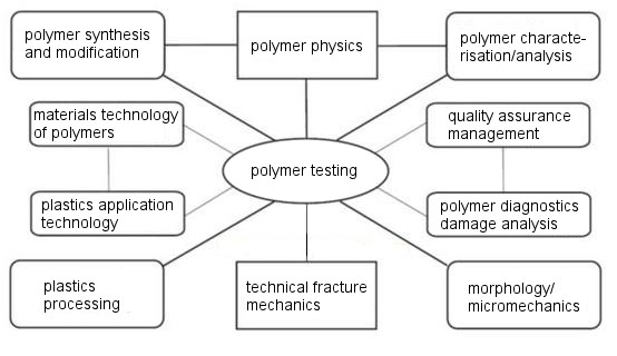 Polymer testing, like all other technical scientific disciplines, has a pronounced interdisciplinary character (see Fig.). The picture also shows the particular specifics of polymer testing, which is the connection between polymer synthesis and plastics processing on the one hand and between polymer characterization/analysis and morphology/micromechanics on the other. The terms “plastic” and “polymer” are used synonymously, with the more frequently used term being preferred in the image.