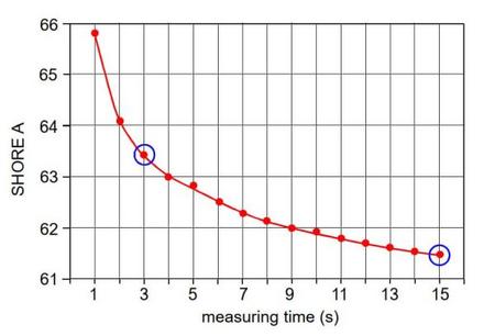 | Figure 5: | Relationship between SHORE A hardness and measuring time |