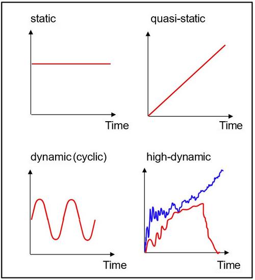 'Static' generally refers to a load in which the material is subjected to a static constant load. In the ‘classic’ tensile test, the load is applied continuously and without impact (quasi-static). The upper limit of the loading rate for quasistatic test methods is at strain rates of 1 s-1.