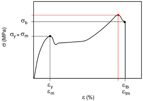 | Fig. 1: | Typical stress–strain curves and associated parameters in the tensile test [1] |
