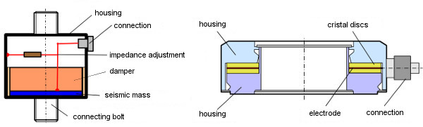 The piezoelectric force transducers, on the other hand, use NEWTON's principle and are mostly used for dynamic loads, as these require higher signal dynamics. During acceleration, a charge proportional to the load is generated via the seismic mass on the piezo crystal, which can be registered with a charge amplifier. Piezoelectric crystal discs are mostly used in smaller ring load cells (Fig. 8).