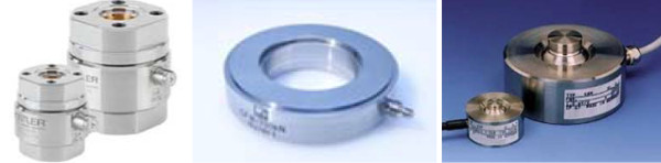 Compared to electro-mechanical force measuring cells, piezoelectric transducers have very low inherent deformation due to their high stiffness, resulting in a high resonance frequency. Such high frequencies are only achieved with electro-mechanical force measuring cells at very high nominal loads. For this reason, and due to their high signal dynamics, piezoelectric sensors are suitable for dynamic applications (instrumented impact or puncture impact tests) and comparatively small forces. Figure 9 shows different versions of these force measuring cells.
