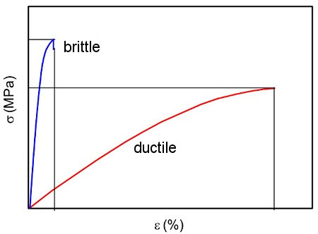 | Fig. 2: | Stress–strain diagrams of brittle and ductile material |