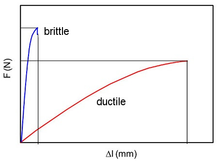 | Fig. 1: | Force-elongation diagrams of a brittle and a ductile material |
