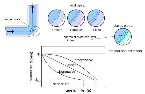 Fig. 4: Wall thickness measurement on metal and plastic pipes and use of the results for service life prediction